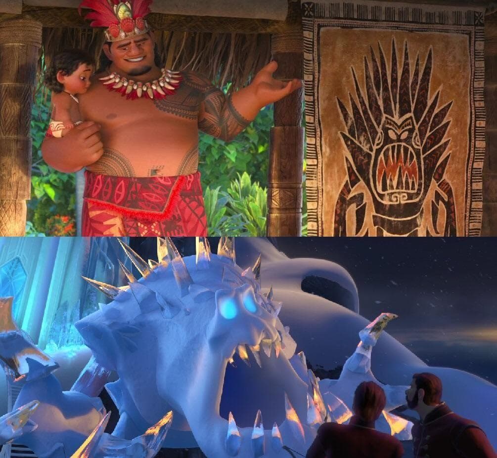 In Moana 2016 During The Song We Know The Way None Of The People Have Tattoos It S Not Until After They Find Their Island Home That We See Characters With Tattoos This